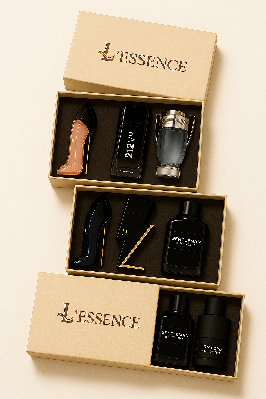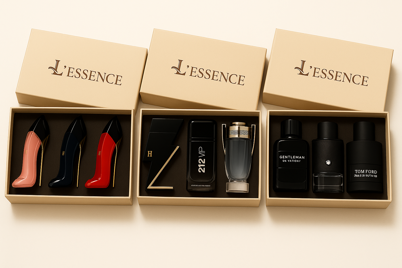 Este kit refleja personalidad y gusto. Los tres perfumes son icónicos y no pasan desapercibidos. Excelente curaduría.